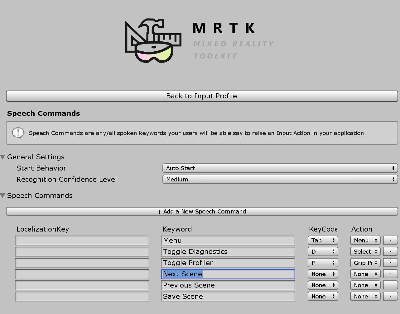 Speech Input Profile (音声入力プロファイル) さらに、グローバルな Speech Commands Profile に音声コマンド キーワードを登録する必要があります。
